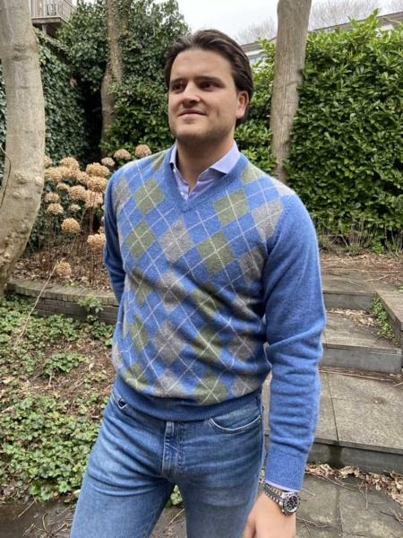 Pullover lambswool Taupe met Harris Tweed details Taupe