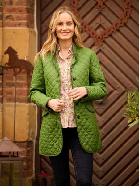 • Wellington, Harris Tweed damesjas gesteppt met Polarfleece Olijfgroen