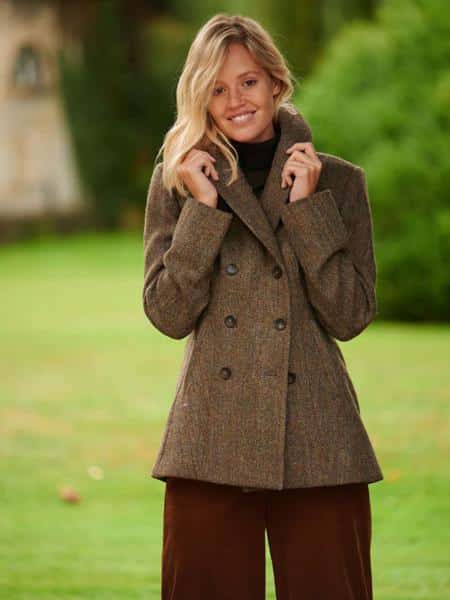 De stijlvolle damesjas “Bailey” biedt uitzonderlijk comfort dankzij de HARRIS TWEED-stof. Dit exclusieve en duurzame materiaal krijgt alleen een keurmerk als het met de hand is geweven op het Schotse eiland Harris. Deze duurzame stof van topkwaliteit heeft uitstekende isolerende eigenschappen en houdt je heerlijk warm.