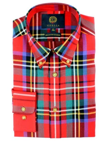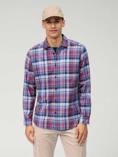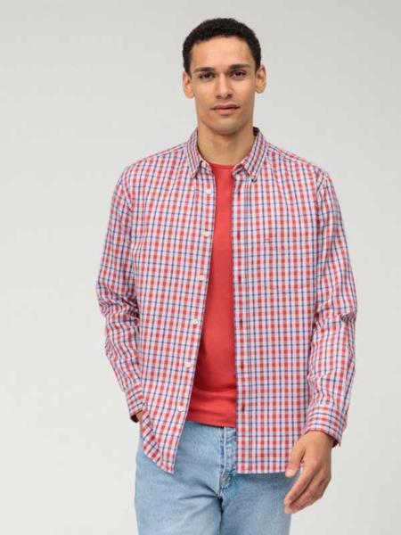 • Overhemd Button Down “Steward” In Wine Red And Blue Window Check