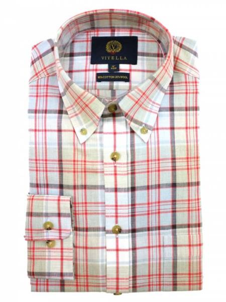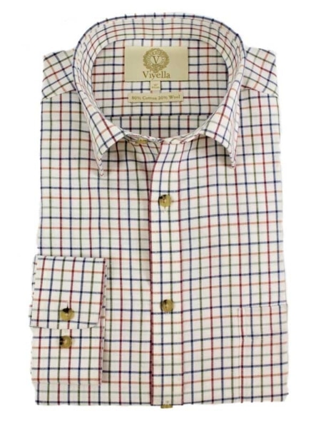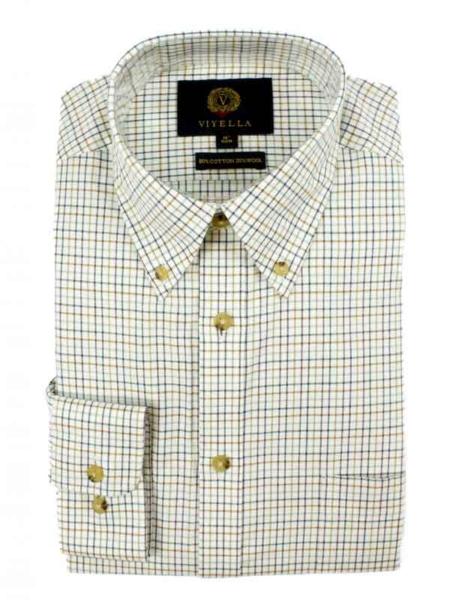 • Viyella Shirt Blue Brown Tattersall Check Classic Fit with Button Down Collar