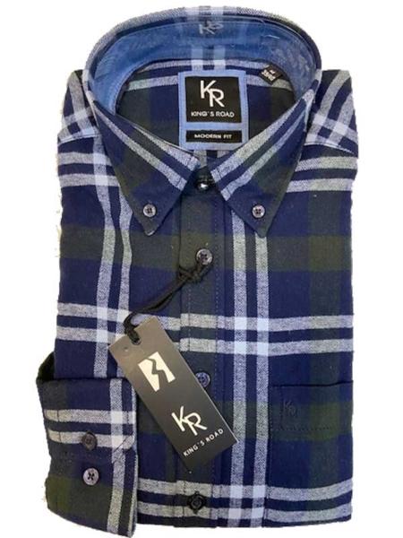 • Shirt King’s Road, Blauw Groen Ruit, Zware Flannel