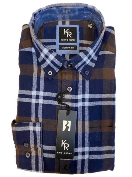 • Shirt King’s Road, Blauw Bruin Ruit, Zware Flannel