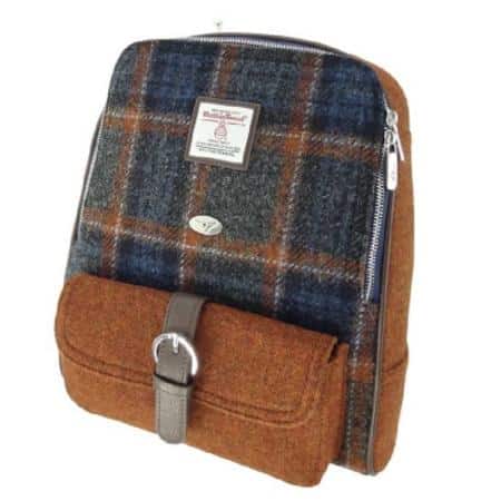 • Harris Tweed ‘Naver’ Backpack in Grey with Rust Overcheck