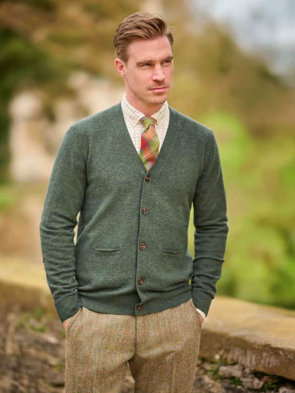 Home » Winkel » Cardigan lambswool met Harris Tweed details Grey