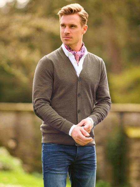 Ontdek het herenvest “The Cardigan”, gemaakt van de fijnste scheerwol, dat stijl en comfort perfect combineert. Een waar genot voor de huid, want merinowol is drie keer fijner dan traditionele wol en behoort tot de zachtste stoffen die er zijn. Dankzij de uitstekende isolerende eigenschappen tegen zowel kou als warmte is dit comfortabele vest in een subtiel gemêleerd garen de perfecte keuze voor alle seizoenen. De gebreide regular fit heeft fijn geribde manchetten, zoom en V-hals. Doordachte details zoals ingebreide zakken, knopen met hoorneffect en elleboogstukken van echte Harris Tweed benadrukken de stijlvolle, authentieke countrylook. Of u het nu onder een blazer draagt voor een elegante zakelijke look of casual over een overhemd, dit vest is een onmisbare, tijdloze allrounder. Een echte must-have voor de garderobe van elke man, het maakt indruk met zijn uitzonderlijke comfort en voortreffelijke vakmanschap. Ervaar de perfecte combinatie van traditie en luxe met Wellington of Bilmore.