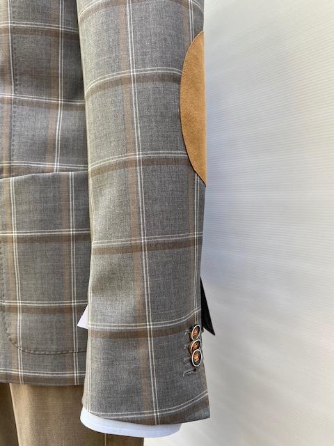 De armstukken op dit colbert zijn in cognac uitgevoerd samen met de kleur accenten in de knopen en voering maken het een leuk draagbaar en sportief gekleed colbert.