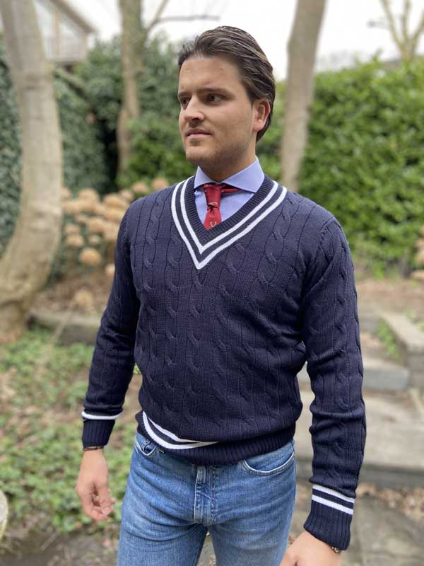 Home » Winkel » Truien en Pullovers » Wollen truien » Grafton Cricket Cable Vee Navy