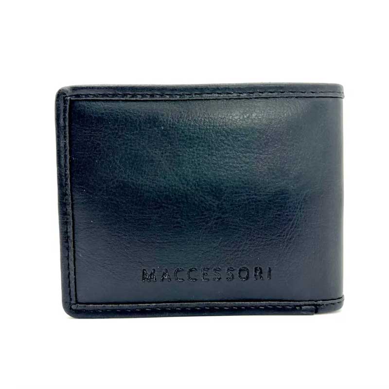 Afmetingen van de opvouwbare herenportemonnee: 9 cm x 11,5 cm x 1,5 cm.