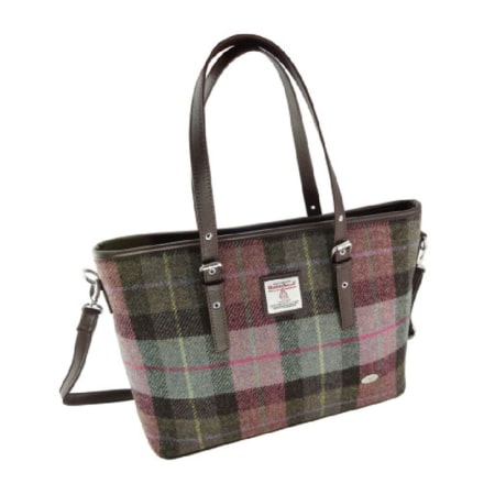 Hoogwaardige reistas in klassieke Harris Tweed-stijl, afgewerkt met echt leer in een bijpassende kleur.