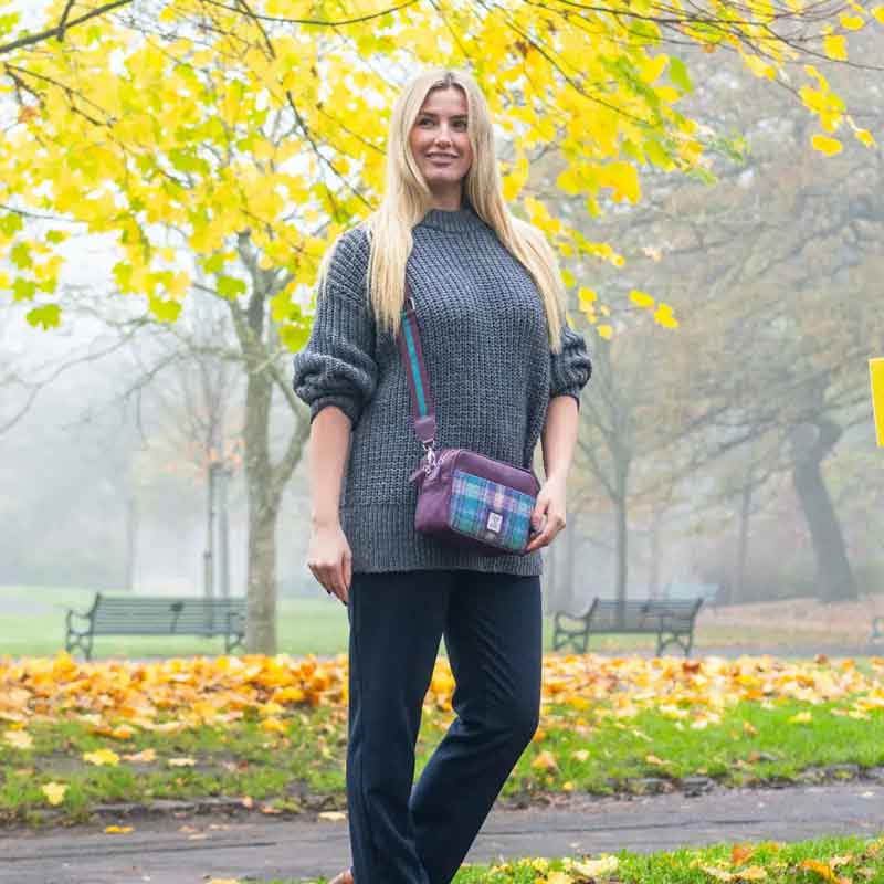 • Harris Tweed Mini Crossbody Bag in Green/Purple Plaid