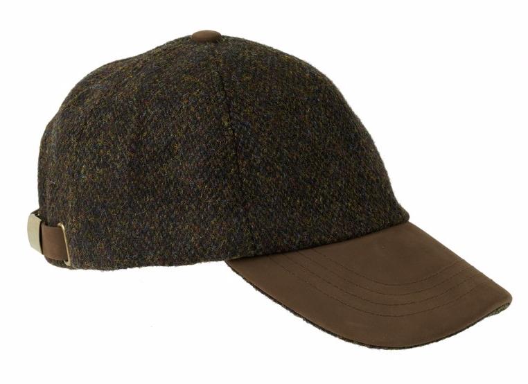 A baseball cap for those wanting to mix tradition with modernity. Conventional baseball design but made from Genuine British Harris Tweed combined with an authentic sturdy leather peak. Black cotton twill lining. An adjustable leather strap with antique brass buckle fastening ensures that the Glencairn is a good fit for all.
