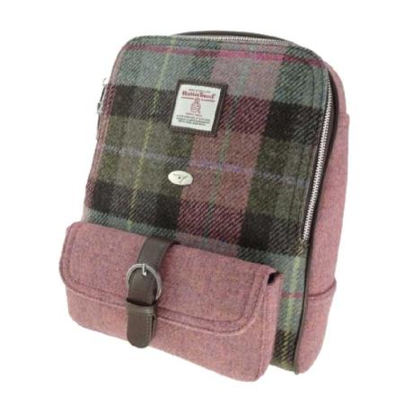 • Harris Tweed ‘Naver’ Backpack in Muted Green and Rose Pink Tartan