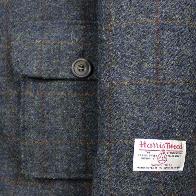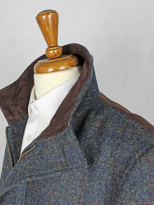 – Blauwe Harris Tweed met meerkleurig ruitpatroon
