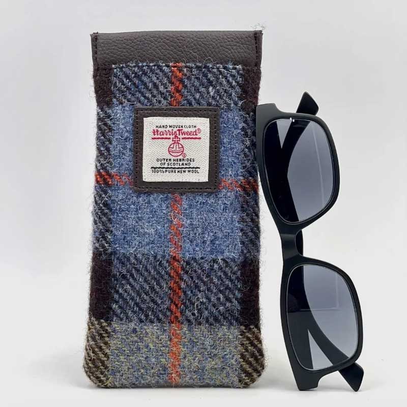 Harris Tweed Glasses Sleeve Blue/Brown Check. Bescherm uw bril of zonnebril in stijl met onze luxe brillenhoes van Harris Tweed.
