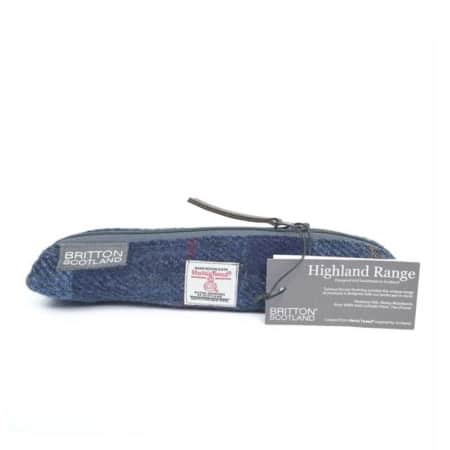 • Harris Tweed Highland Range Slim Pencil Case Navy Plaid