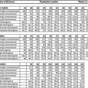 Artikelmaten: Voor maat 50 zijn de afmetingen: Ruglengte: 74 cm – Mouwlengte vanaf de bal: 64 cm – Halve taille: 51 cm