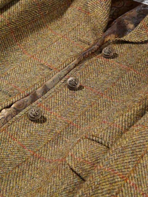 – Mosterdkleurige geruite Harris Tweed