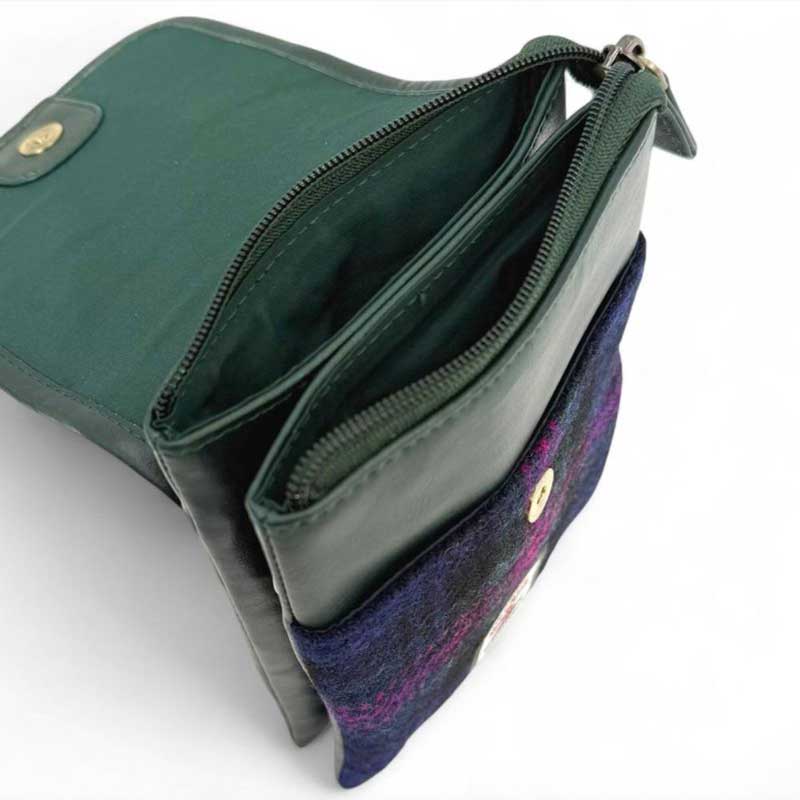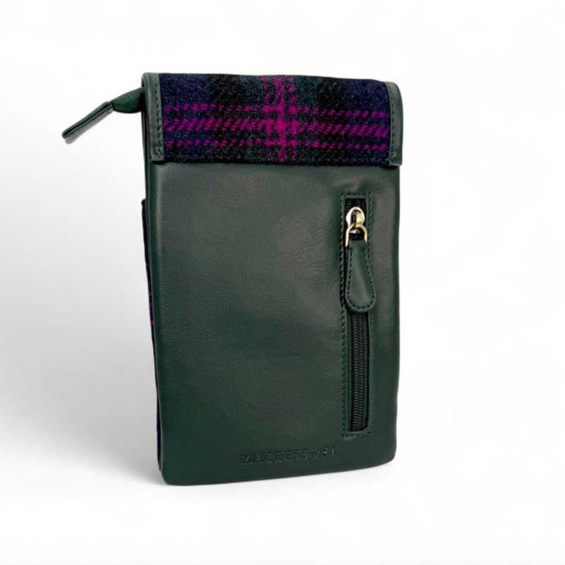 • Harris Tweed Mini Crossbody Bag in Green/Purple Plaid