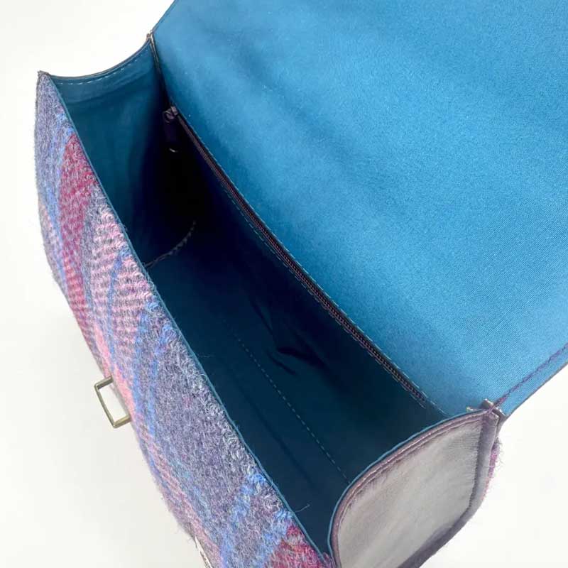 Harris Tweed Mini Day Bag In Sky Blue. Onze Harris Tweed damestas is een van de meest elegante tassen die we ooit hebben ontworpen. Deze moeiteloos chique minitas is ontworpen om uw dagelijkse look naar een hoger niveau te tillen.
