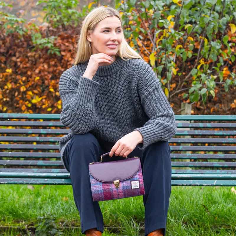 • Harris Tweed ‘Cassley’ Classic Handbag in Dark Green and Plum Check