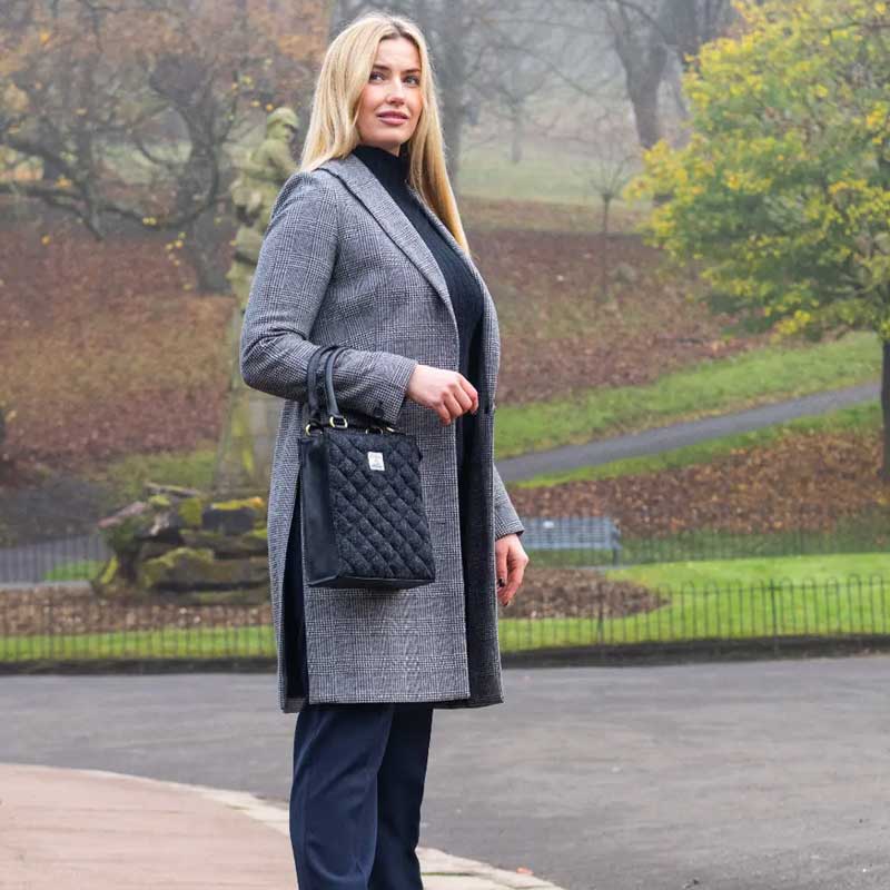 • Harris Tweed Quilt Shoulder Bag In Charcoal
