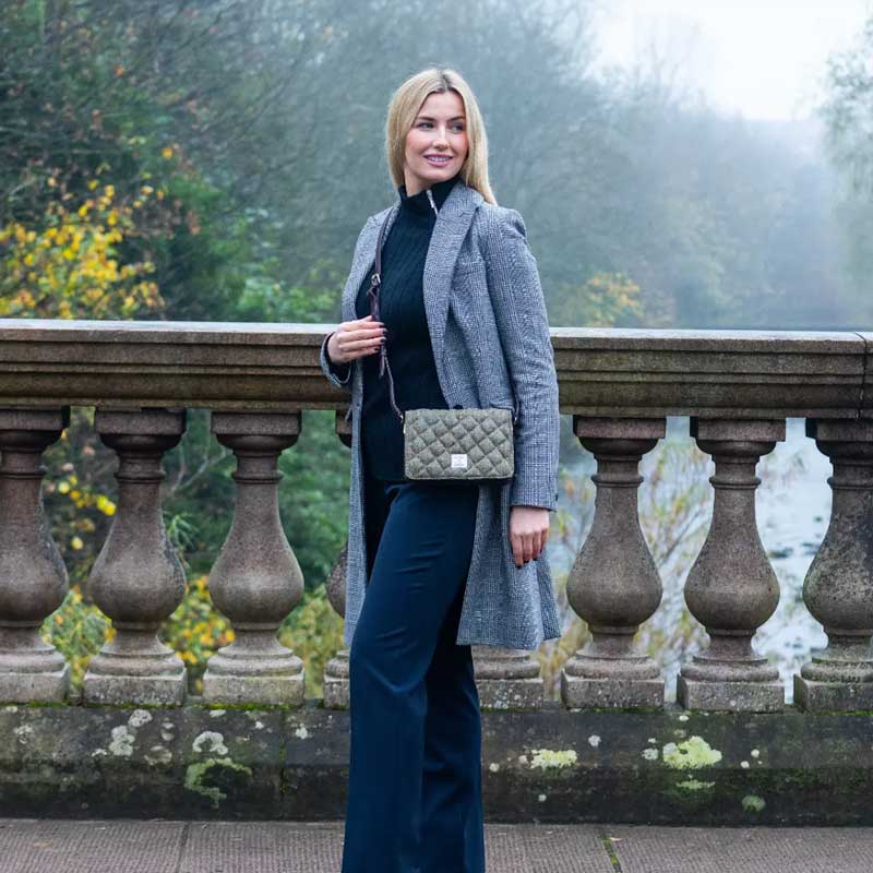 Harris Tweed Quilt Shoulder Bag In Country Green