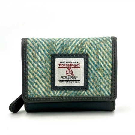• Harris Tweed Trifold Purse In Turquoise Herringbone