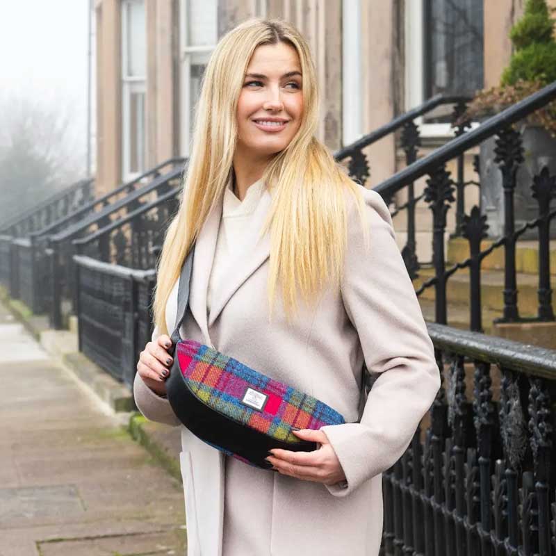 Verkrijgbaar in 7 verschillende tweedstoffen, biedt de Slingbag ruimte aan al je dagelijkse benodigdheden in een stijlvol, handsfree ontwerp. De tas is gemaakt van authentieke Harris Tweed en heeft een brede schouderband die je in de hand kunt dragen of moeiteloos over je schouder kunt slingeren.