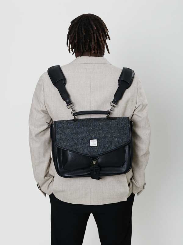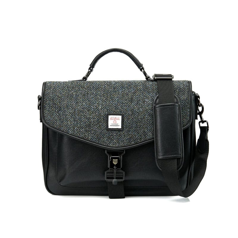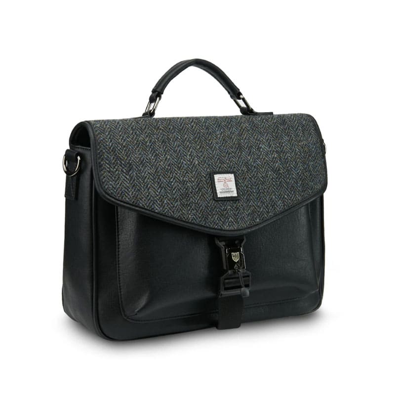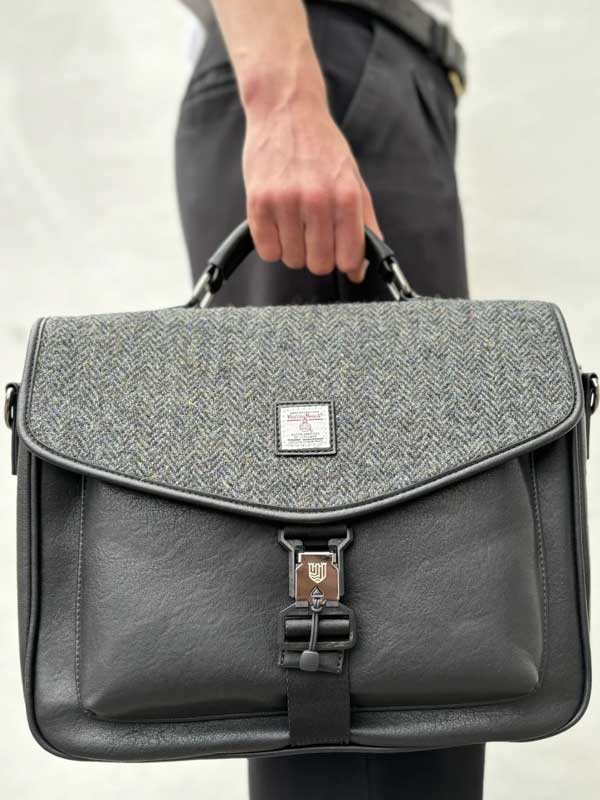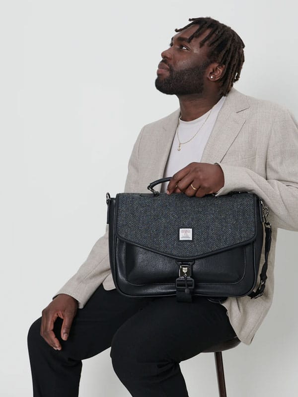 Maak kennis met de laptoptas. Gemaakt van duurzaam microvezelleer en afgewerkt met een authentiek Harris Tweed®-deksel, is dit stijlvolle ontwerp een must-have voor elke garderobe.