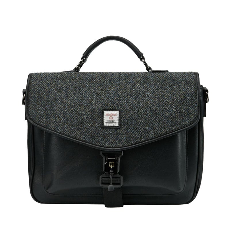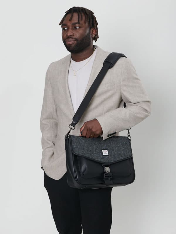 Harris Tweed The Laptop Satchel, Black Grey Herringbone