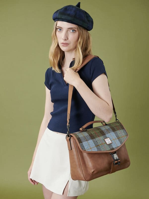 Maak kennis met de laptoptas. Gemaakt van duurzaam microvezelleer en afgewerkt met een authentiek Harris Tweed®-deksel, is dit stijlvolle ontwerp een must-have voor elke garderobe.