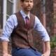 Harris Tweed Vestje Tailor Zonder Revers In Blue Herringbone 610. Het "Tailor" gilet, gemaakt van 100% echte Harris Tweed, handgeweven in de Schotse Buiten-Hebriden, staat voor ongeëvenaard vakmanschap en het hoogste comfort.