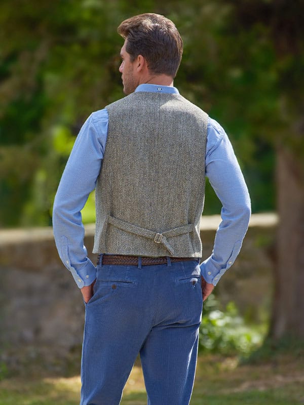 Harris Tweed “Wales” gilet – voor mannen met stijl, verfijning en gevoel voor traditie.