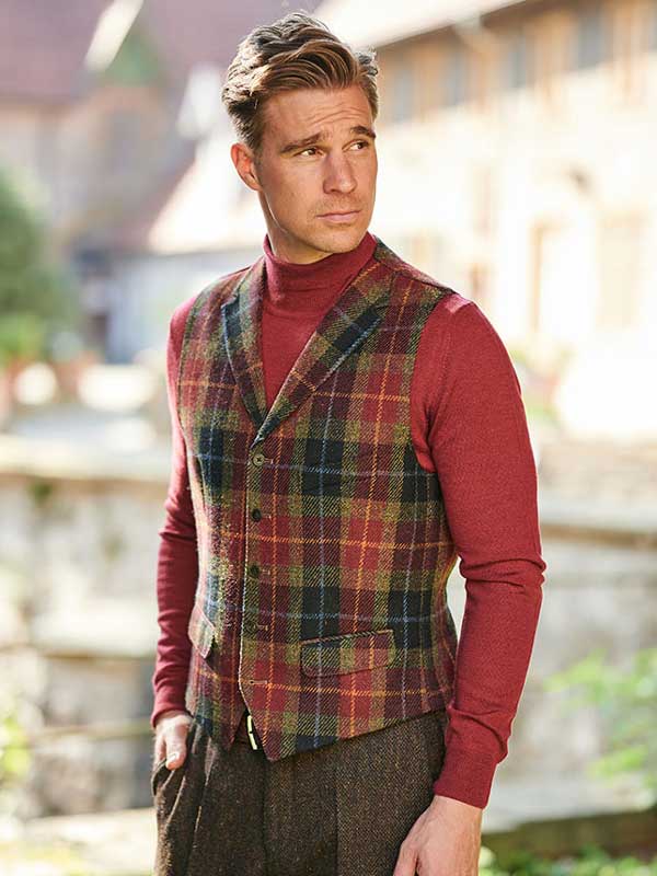 Of u het nu combineert met het bijpassende Harris Tweed jasje ”London”, casual met een jeans of klassiek met een chino en corduroy broek – het ”Wales” vest bewijst zich als een veelzijdige allrounder met karakter en is een uiting van stijl, kwaliteit en individualiteit.