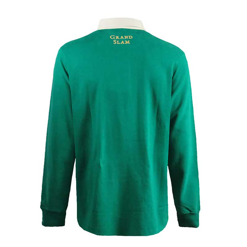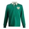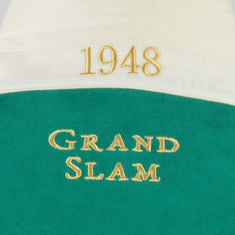 The Ireland Rugby Shirt 1948 Grand Slam. Manufactured from satin touch 100% cotton, the jersey features a detailed applique Crest. In addition, features include a herringbone finish on the vents and tape on the neck opening. Also, take a look at our other vintage Irish rugby jersey.