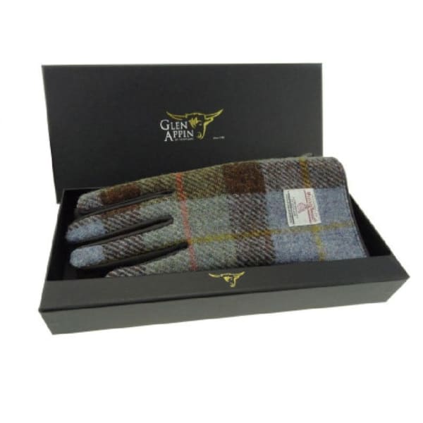 Home » Winkel » Shawls » Handschoenen Shawls » Ladies Brown Leather & Harris Tweed Gloves Boxed in MacLeod