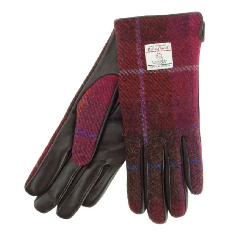 Home » Winkel » Ladies Brown Leather & Tweed Gloves in Dark Pink Tartan