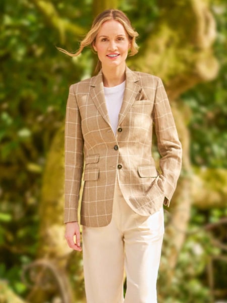 • Linnen Dames Jasje Carola In The Beige Window Check