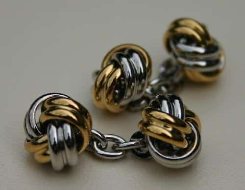 Home » Winkel » Smoking en accessoires » manchetknopen » gekleed » Manchetknoop bolletjes bi-colour met kettinkje