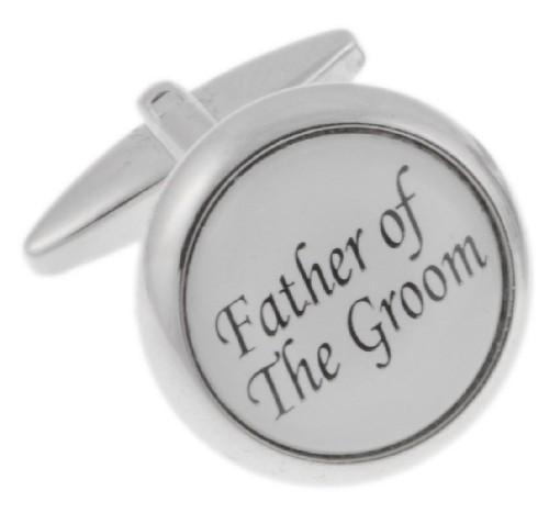 Prachtige ronde manchetknopen met de tekst ‘Father of the Groom’ erop, perfect om te dragen bij uw hemd met dubbele manchet. Onder bijvoorbeeld uw smoking.