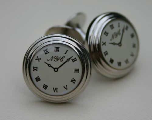 Maak een afspraakPrachtige ronde manchetknopen met een klokje erop, perfect om te dragen bij uw hemd met dubbele manchet. Onder bijvoorbeeld uw smoking.