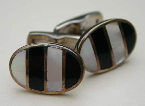 Maak een afspraakPrachtige sterling zilver ovale manchetknopen met parelmoer en onyx, perfect om te dragen bij uw hemd met dubbele manchet. Onder bijvoorbeeld uw smoking.