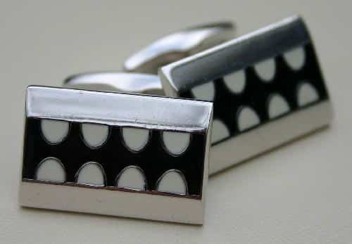 Link naar: Manchetknoop rechthoekig met zwarte inleg Link naar: Manchetknoop rechthoekig met zwarte inleg Manchetknoop rechthoekig met zwarte inleg Link naar: Manchetknopen ovaal met wit – zilver ruitmotief Link naar: Manchetknopen ovaal met wit – zilver ruitmotief Manchetknopen ovaal met wit – zilver ruitmotief Scroll naar bovenzijde