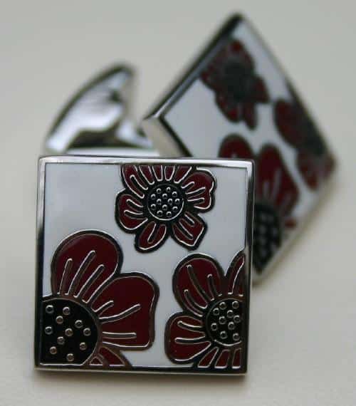 Maak een afspraakPrachtige vierkante manchetknopen met bloemen, perfect om te dragen bij uw hemd met dubbele manchet. Onder bijvoorbeeld uw smoking of trouwpak.