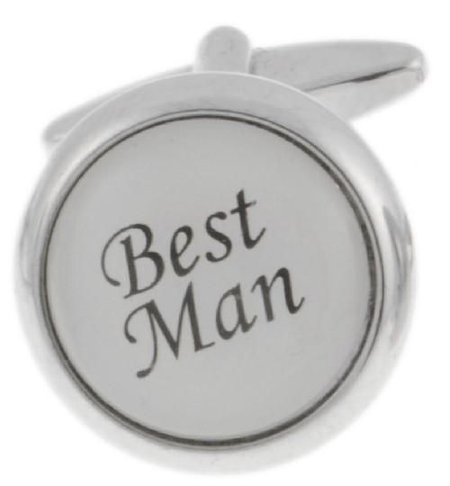 Prachtige ronde manchetknopen met tekst ‘Best Man’ erop, perfect om te dragen bij uw hemd met dubbele manchet. Onder bijvoorbeeld uw smoking of kostuum.