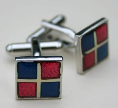 Prachtige vierkante manchetknopen met blauw/rood geruit patroon, perfect om te dragen bij uw hemd met dubbele manchet. Onder bijvoorbeeld uw smoking.