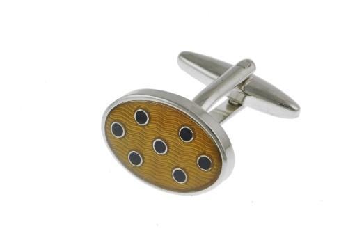 Home » Winkel » Smoking en accessoires » manchetknopen » gekleurd » Manchetknopen ovaal met stippen geel