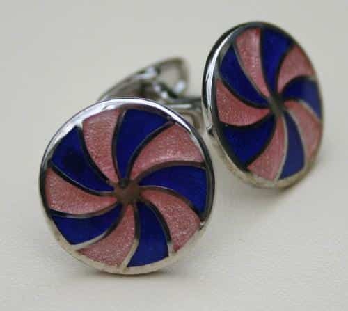 Prachtige ronde manchetknopen met blauw/roze patroon, perfect om te dragen bij uw hemd met dubbele manchet. Onder bijvoorbeeld uw smoking.