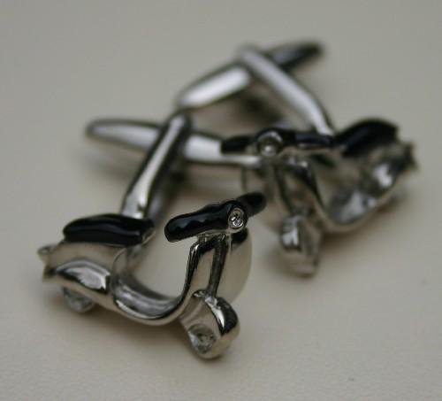 Prachtige manchetknopen in de vorm van een scooter, perfect om te dragen bij uw hemd met dubbele manchet. Onder bijvoorbeeld uw smoking of kostuum.